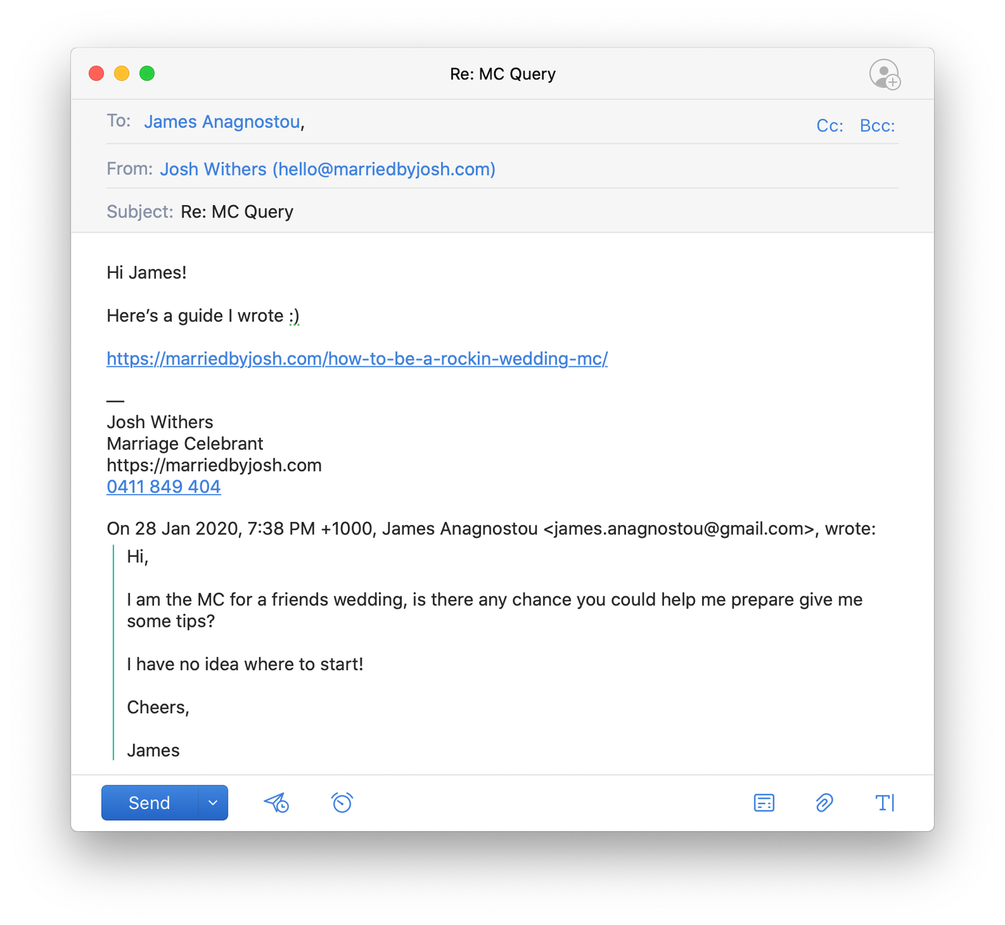 A common question I’m asked is about how to be a good wedding MC, for example: