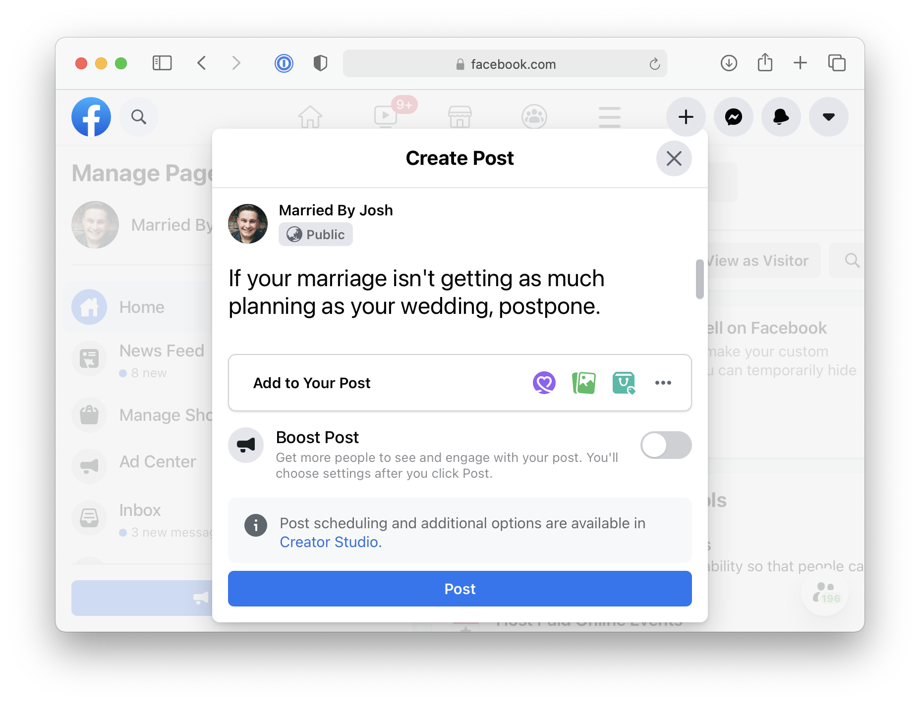 Today’s challenge is a short and sweet text post on at least Facebook, and hopefully Twitter and LinkedIn as well.