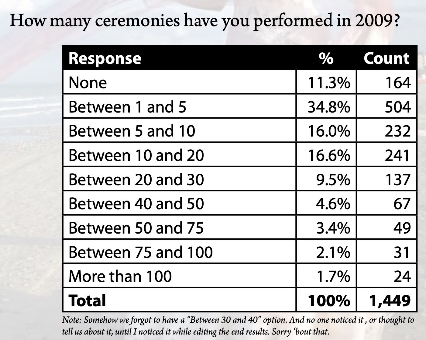 Originally published on the Celebrant Institute: https://celebrant.institute/community/check-out-an-11-year-old-celebrant-survey/.