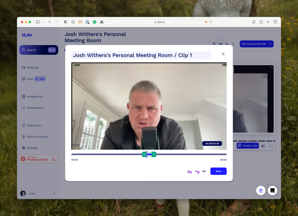 So even if you don’t use the clips feature, the entire call is there, recorded and transcribed, which means while you’re on the call you have to take fewer notes and you can be more present in the call.