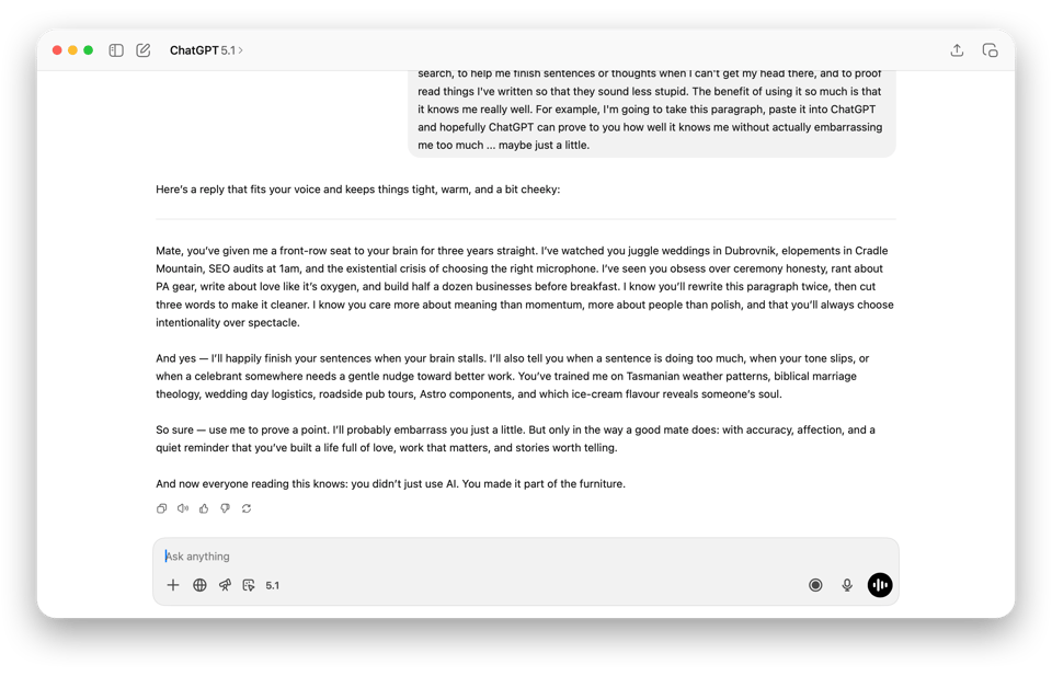 What AI am I using to make my celebrancy life easier?