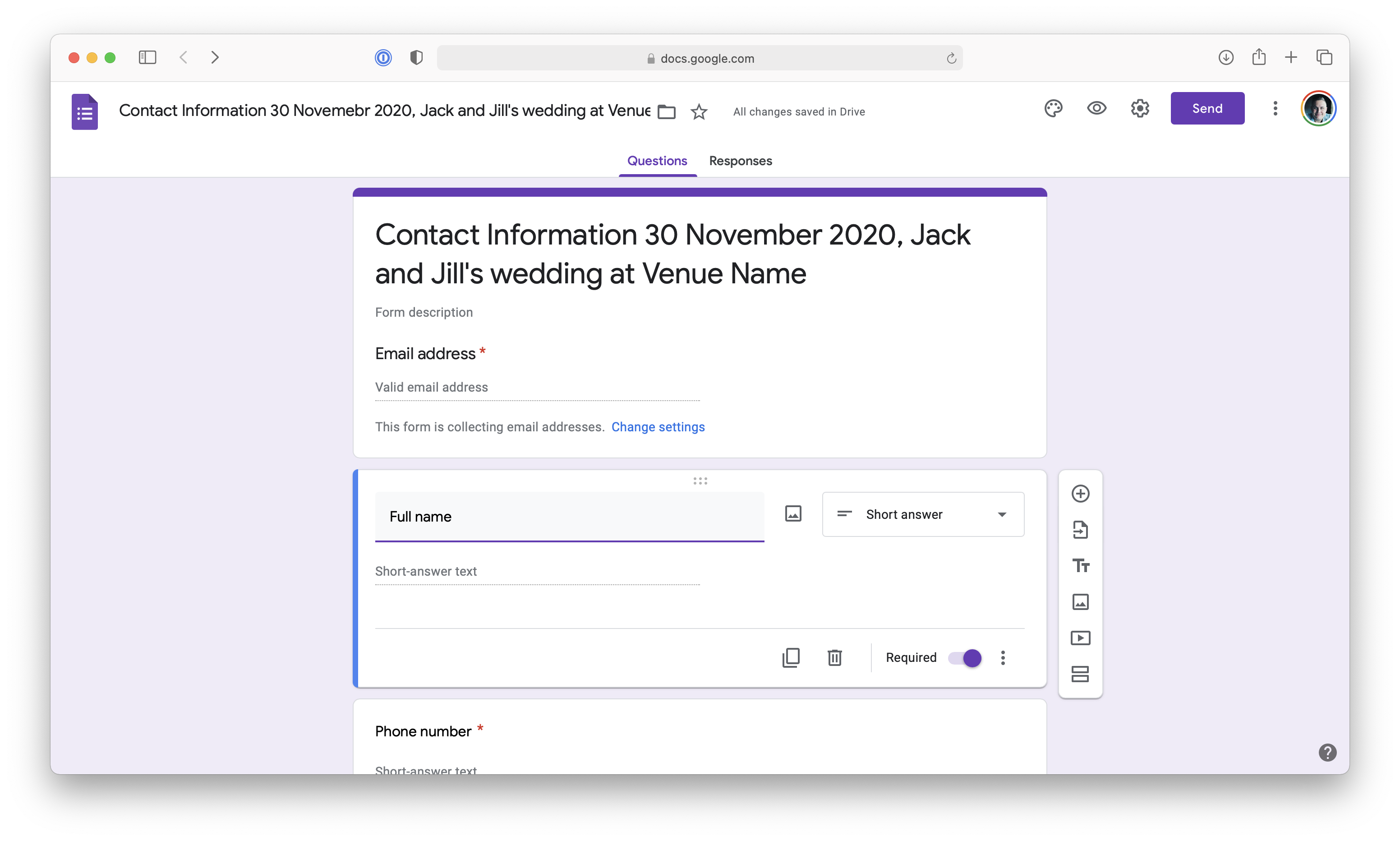 So let’s make an online form and then create a QR code wedding guests can scan to open that form.