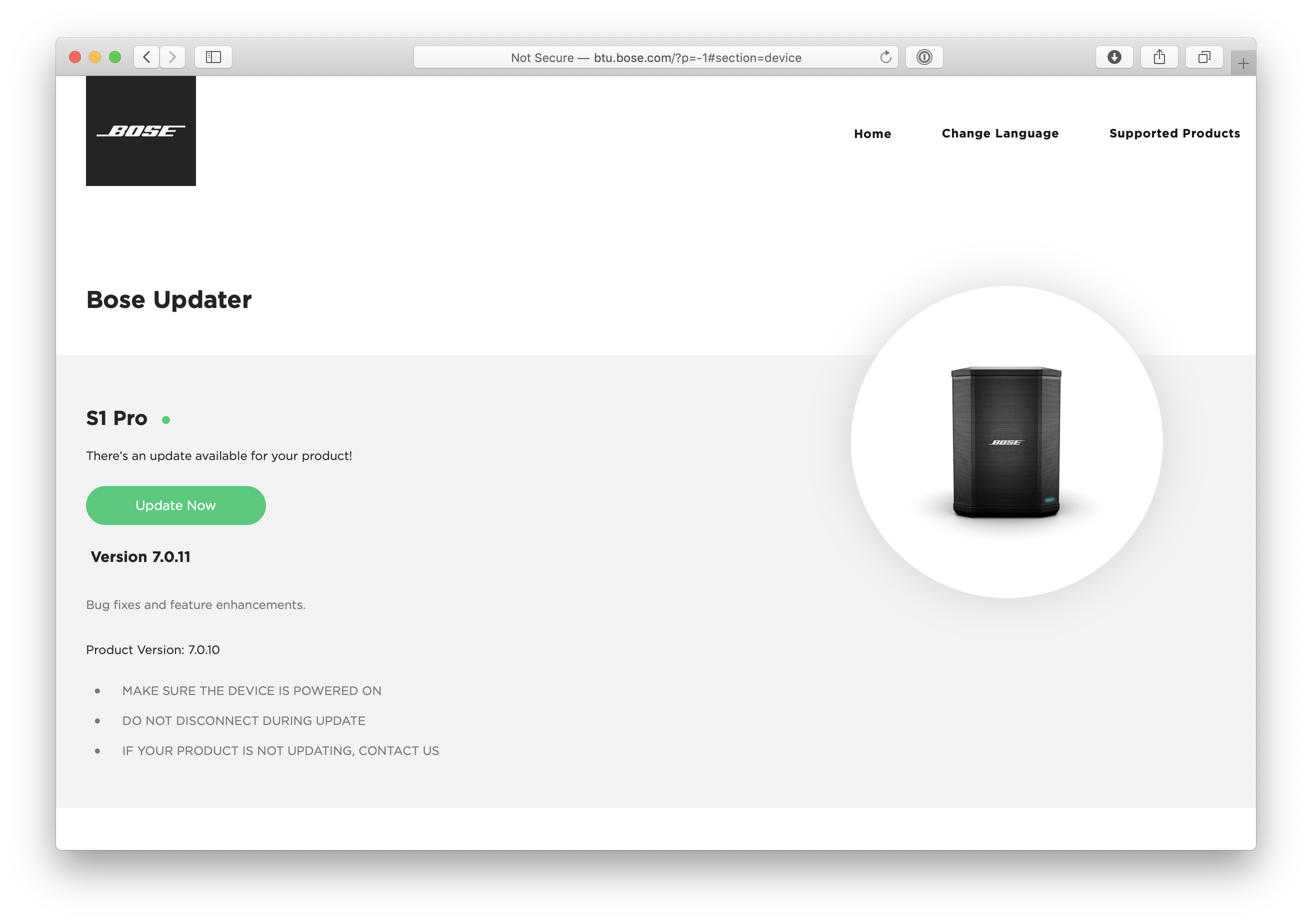 A few members reached out with knowledge about the Bose S1 that even I wasn’t aware of, so I thought it would be helpful to share it with everyone else: you can update the software on your Bose S1 speaker, and it comes with new features like using your speakers with the Bose Connect app, whilst also making the speakers operate with greater stability.