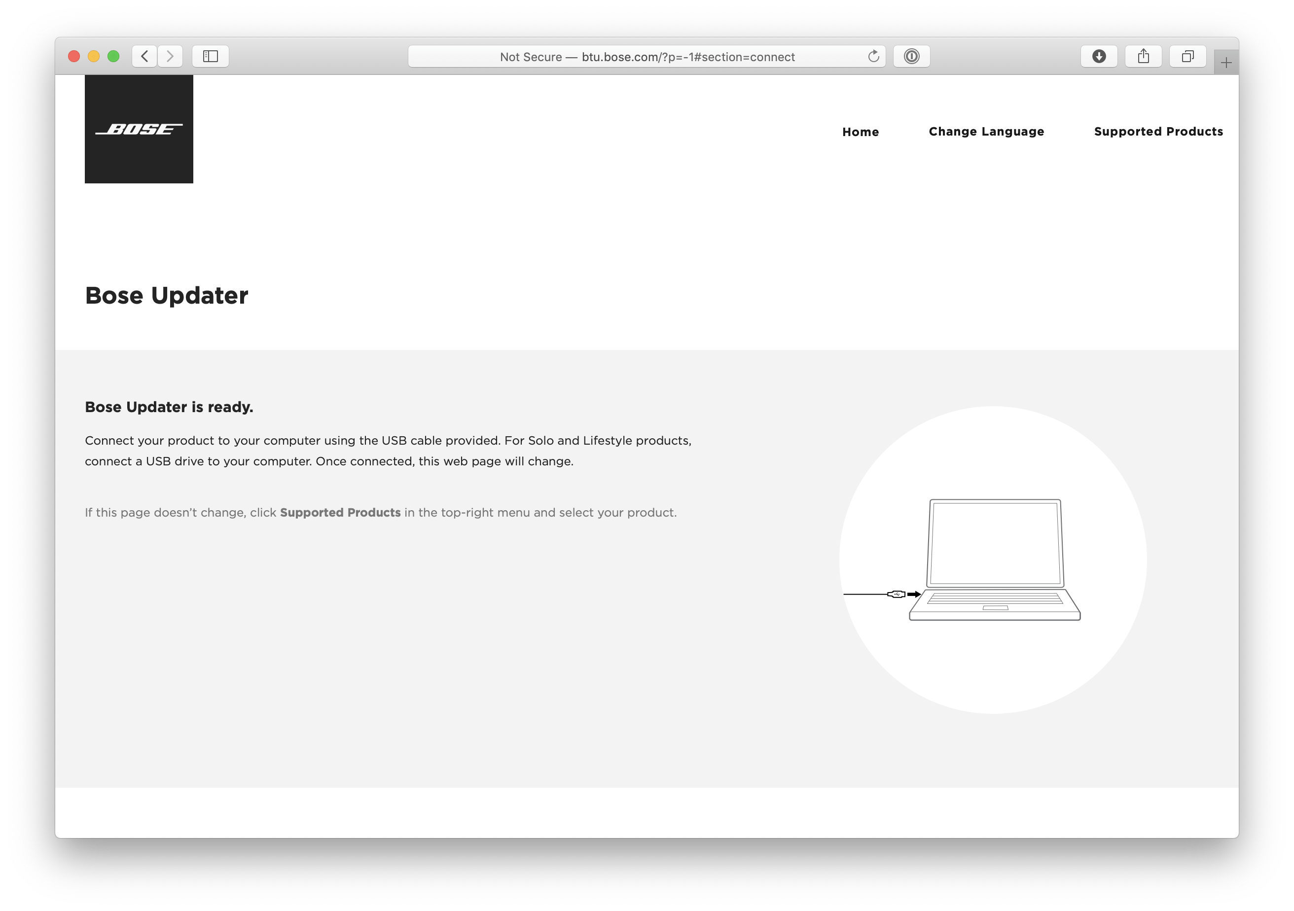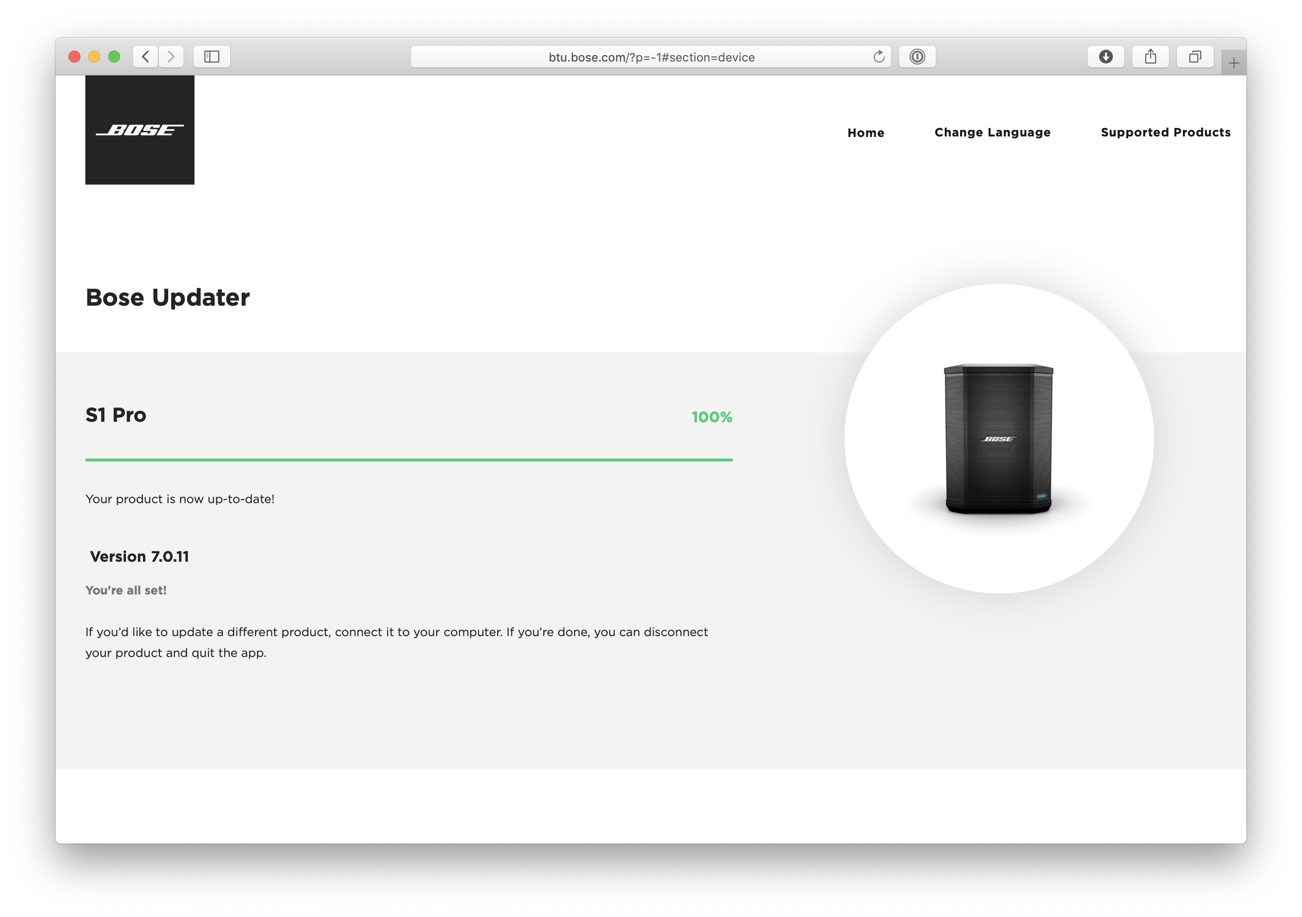 The web page talks to the Bose Updater software which talks to your speaker, and if needed, you get the opportunity to install the new software.