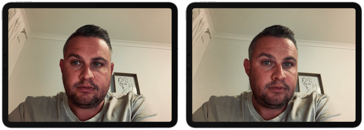 Here’s an example from my iPad, one is me looking at the people I’m talking to, and one is me looking at the camera. Which one seems like I’m interested?
