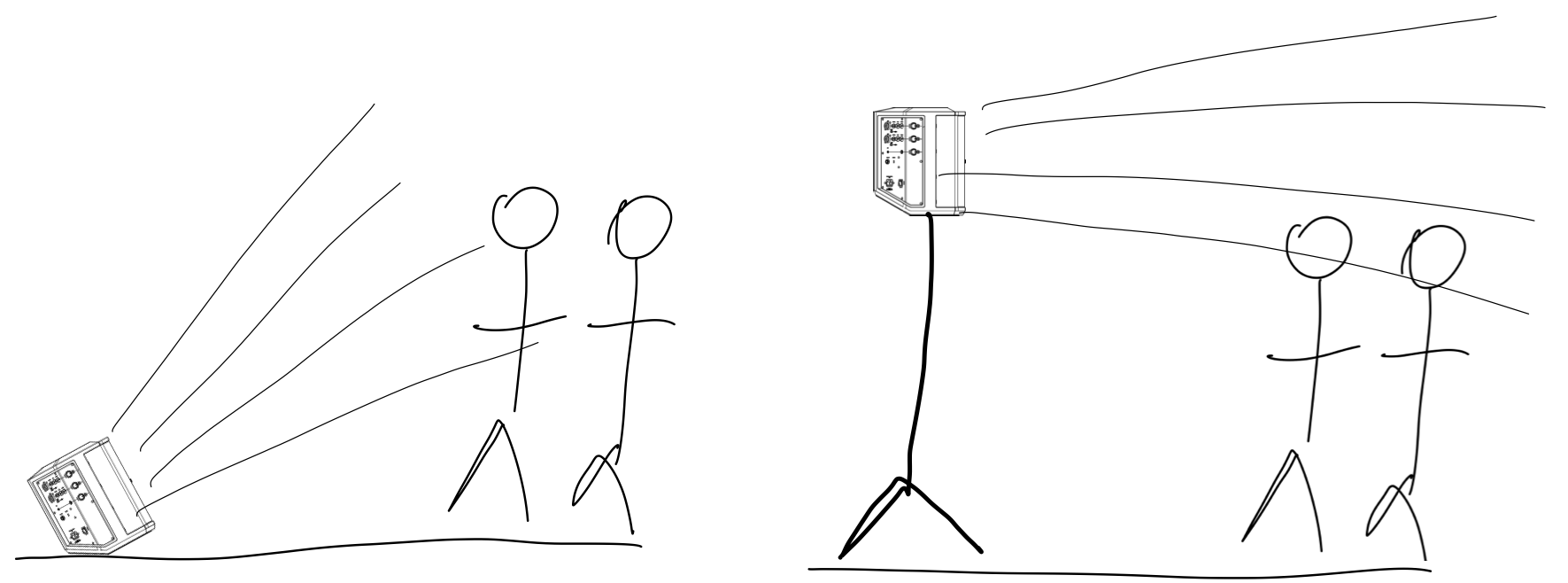 For a simple trick today, set your PA system up today, maybe in the back yard or in your living room, and test it at various levels, and various heights. You’ll hear the difference between the speaker being on the ground and the speaker being on a bench or ideally, at head level.